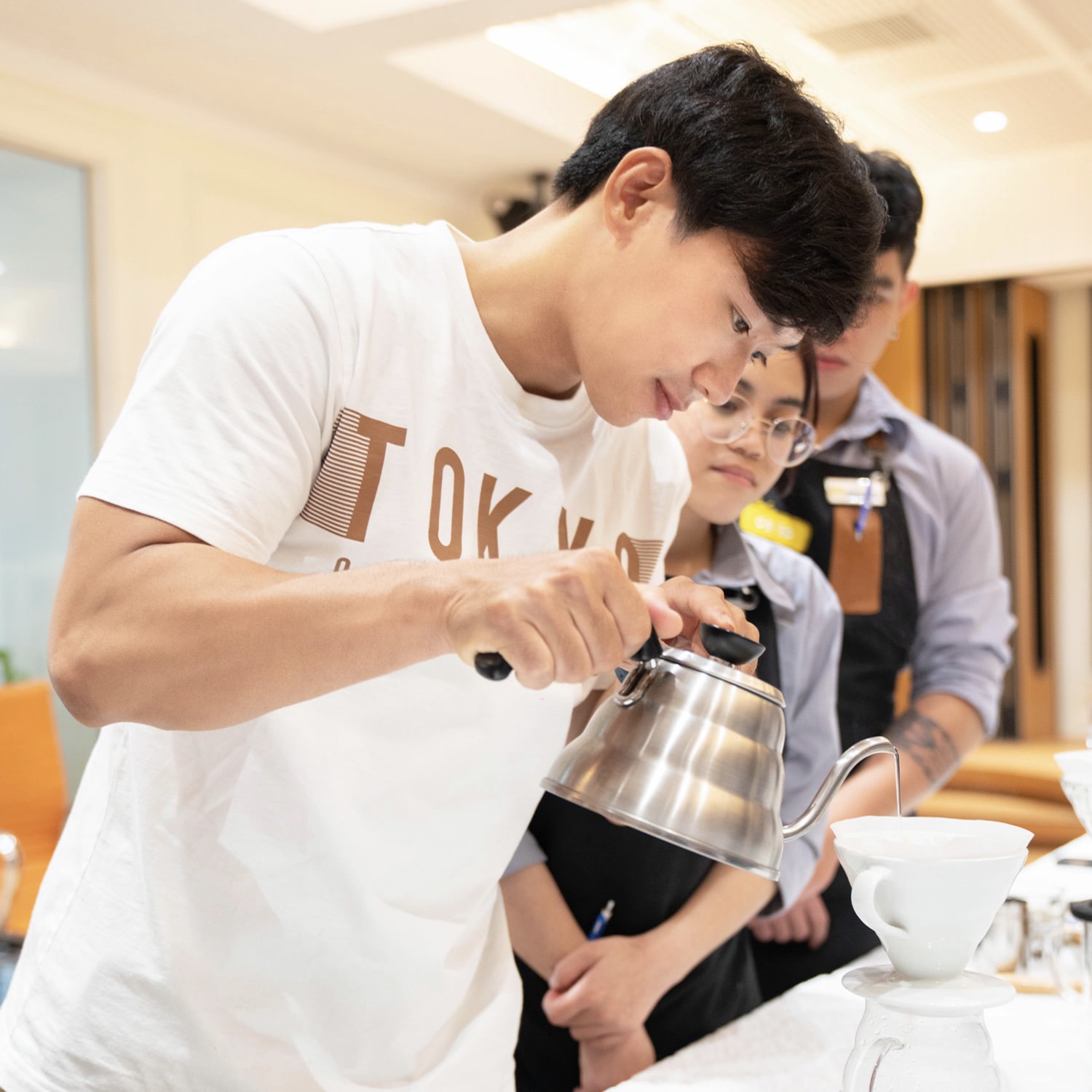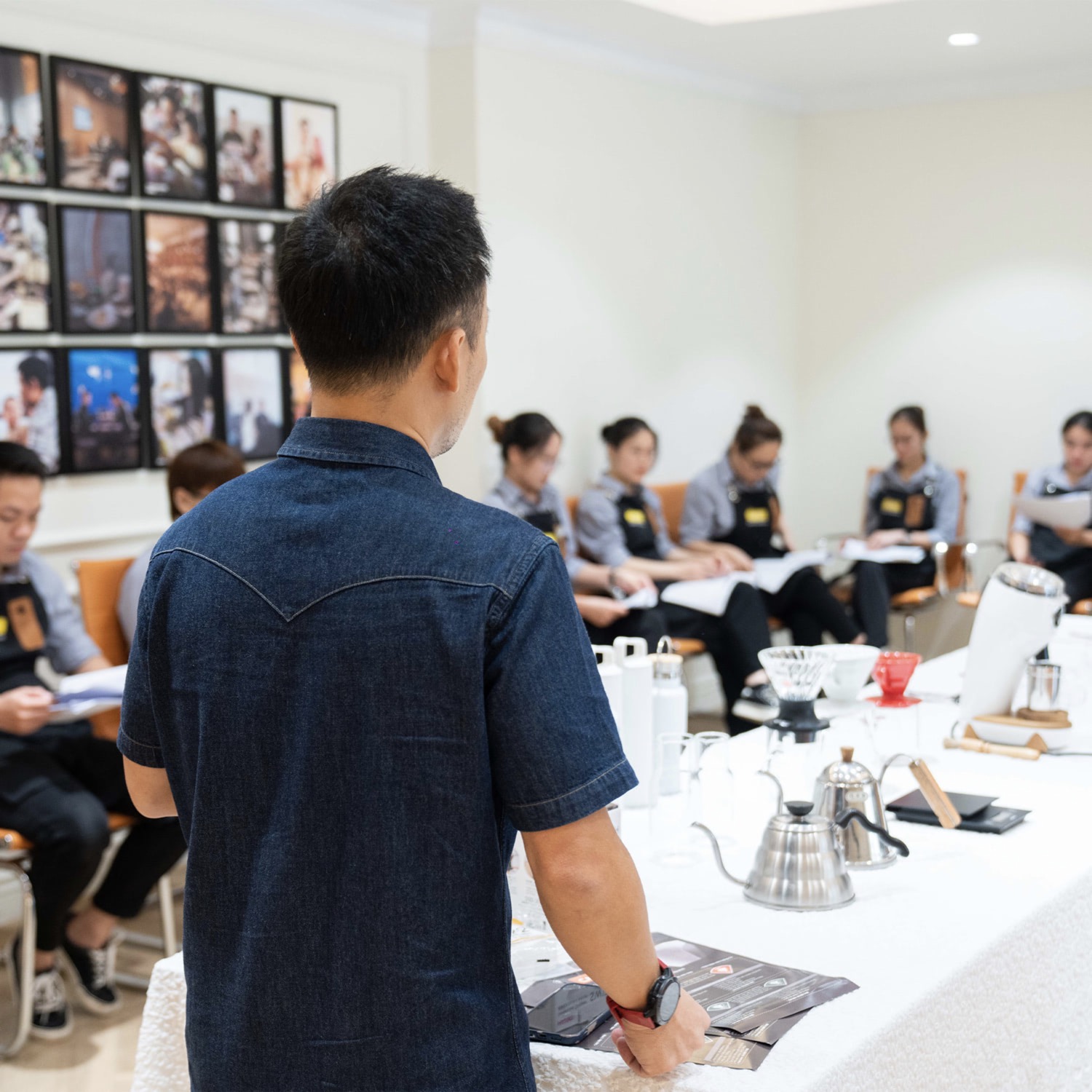 Các bạn nhân viên thưởng thức cà phê Pour Over do Founder Đinh Tiến Đạt và barista chuyên nghiệp thực hiện.