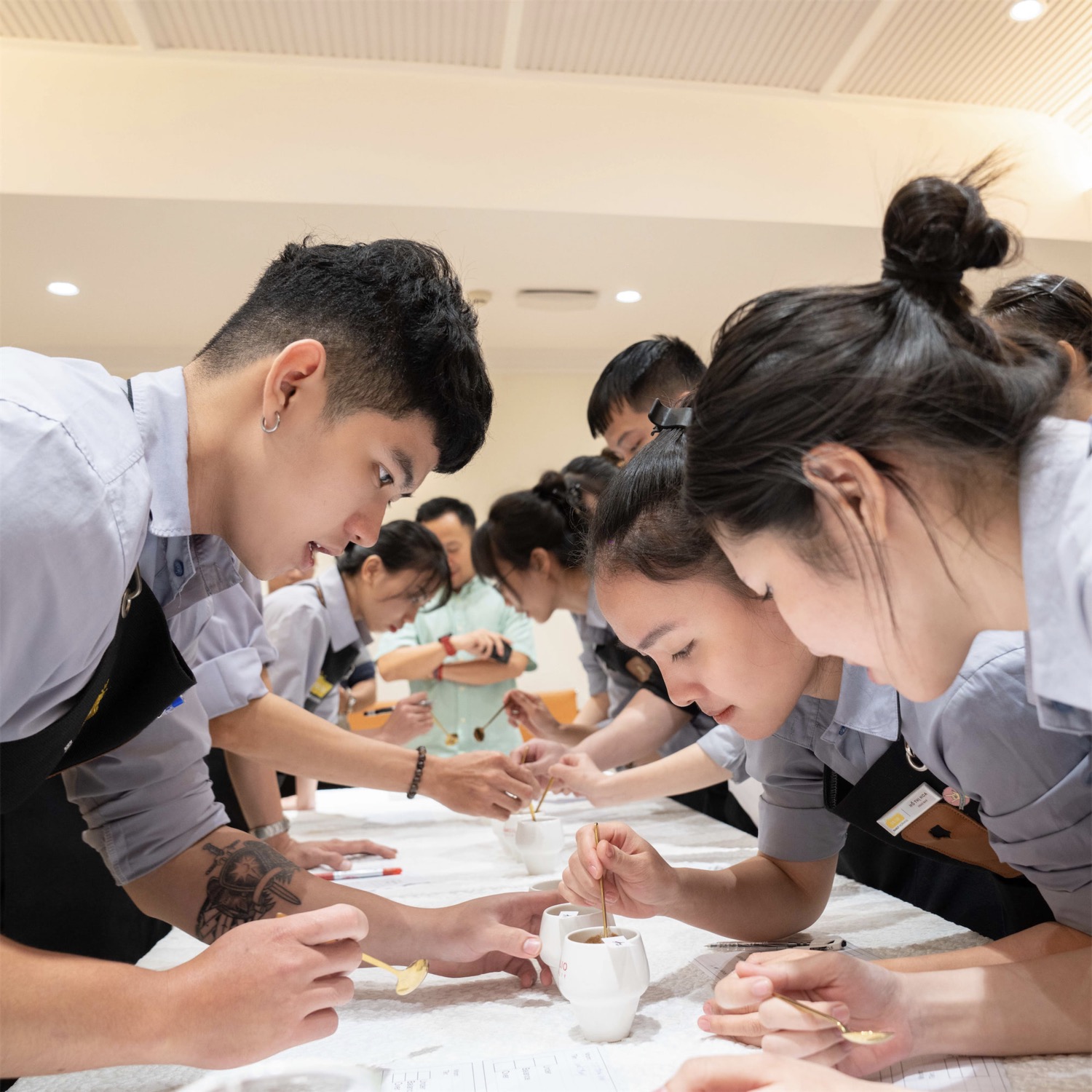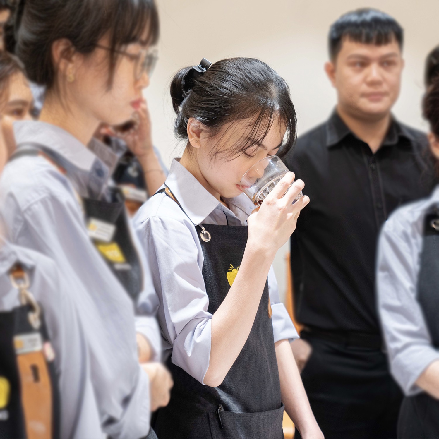 Nhân viên Early Morning được hướng dẫn cách phân biệt và nhận biết hương vị cơ bản cà phê giữa 2 loại cà phê Arabica và Robusta.